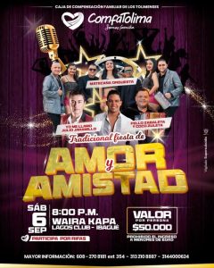 La rumba más esperada del año por los ibaguereños ya tiene fecha y lugar: este sábado 6 de septiembre, prepárate para vivir una noche inolvidable con la Fiesta de Amor y Amistad de Comfatolima, ¡la caja de compensación donde somos familia!