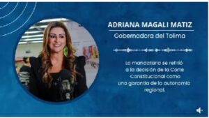 *“No se podía tomar una decisión tan arbitraria sin escuchar a los territorios, sin escuchar a los gobernadores”: Adriana Matiz en relación a decisión de la Corte Constitucional*
