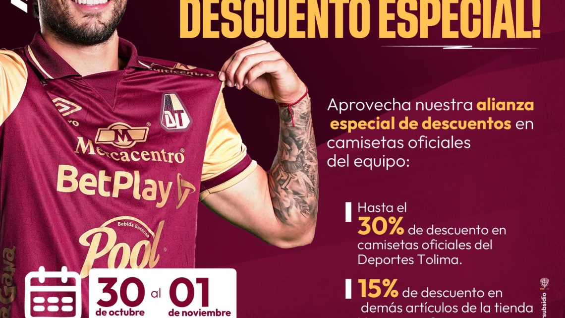 Disfruta tu descuento exclusivo en productos oficiales del Deportes Tolima.