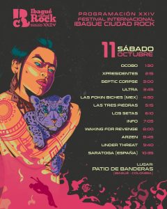 La Capital Musical se prepara para disfrutar de una nueva edición del Festival Ibagué Ciudad Rock, que este año celebra su versión 24 este sábado y domingo los días 11 y 12 de octubre en el emblemático Patio de Banderas, lugar donde inició su trayectoria y que hoy vuelve a ser escenario de esta gran fiesta.