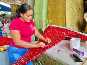 “Mi función acá es ‘enmanguerar’, entelar, ponerle iluminación a las figuras, y cada una está hecha para embellecer a nuestra ciudad en la época decembrina. Con este trabajo ayudo en mi hogar, a mi esposo, colaboro con el estudio de mis hijos”, precisó Anyeline Molina, miembro del Taller de Alumbrado Navideño.
