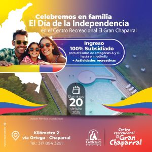 17 julio, 2025Este 20 de julio, Comfenalco Tolima los invita a celebrar en familia la libertad, la unión y el orgullo de ser colombianos, en un destino perfecto para que disfruten de un día lleno de diversión y relajación: el Centro Recreacional El Gran Chaparral.