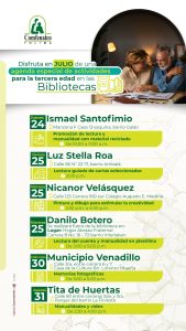 Comfenalco Tolima ha preparado una variada y enriquecedora agenda de actividades dirigidas a la población de la tercera edad, que se llevarán a cabo en diferentes bibliotecas de Ibagué durante esta última semana de julio. Esta iniciativa busca fomentar la participación activa, el aprendizaje continuo y el bienestar de los adultos mayores a través de actividades culturales y recreativas.