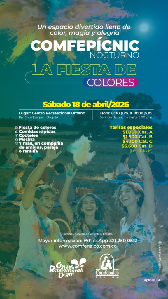 8 abril, 2026Ibagué, Tolima. Con el propósito de seguir generando espacios de integración, recreación y bienestar para las familias tolimenses, Comfenalco Tolima presenta una nueva edición de Comfepicnic, un evento que promete cautivar a los afiliados y a la comunidad en general.