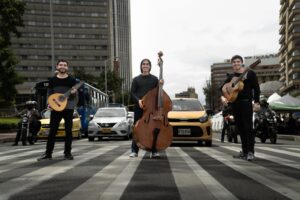 El Trío Plenilunio, integrado por tiple, contrabajo y bandola, propone un diálogo entre la tradición y las nuevas sonoridades de la música de cámara. Su repertorio recorre géneros emblemáticos como el bambuco, el pasillo y otras expresiones de la música latinoamericana, explorando nuevas formas de interpretación desde una mirada contemporánea.