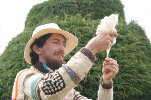 “Es una combinación de mis pasiones: hilar y montar bici. Toda la vida he visto tejer a mi familia y también he amado las montañas. Aquí uní las dos cosas”, cuenta Aulionel.