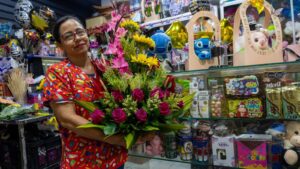 En el pabellón de las flores, los visitantes encuentran una variedad de rosas, lirios, girasoles, claveles, tulipanes, nardos, orquídeas y follajes. Además, los comerciantes ofrecen opciones para todos los gustos y presupuestos, desde detalles elegantes para regalos de grado, hasta decoraciones para el hogar y eventos especiales.