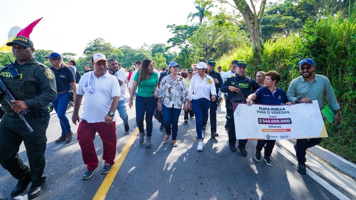 Sobre una carretera pavimentada, en medio de la alegría de moradores, con la presencia de la gobernadora Adriana Magali Matiz y de la directora de Participación Comunitaria del Tolima, Marlen Rozo, se hizo entrega de un cheque por $540 millones; recursos que permitirán la ejecución de un sistema de placa huellas en doce veredas del municipio de Mariquita.