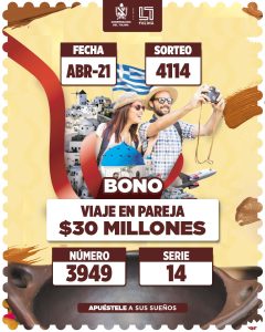 Promocional Viaje en pareja hasta por $30 millones con el número 3949 serie 14