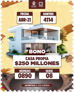 Bono la casa propia por $250 millones de pesos , número 0890 serie 008