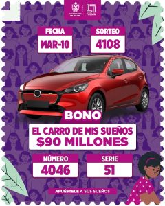 Promocional carro de mis sueños de un bono para Mazda 2 Sport con el número 4046 serie 051