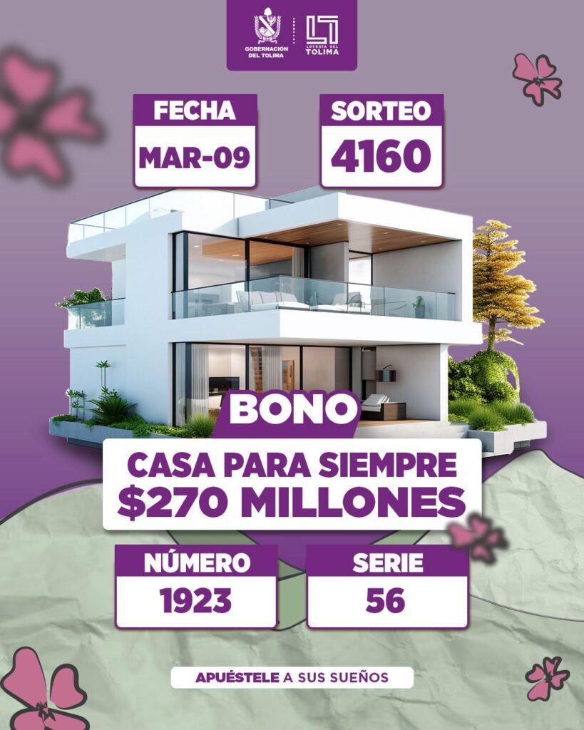 La suerte sigue recorriendo el departamento con la Lotería del Tolima.