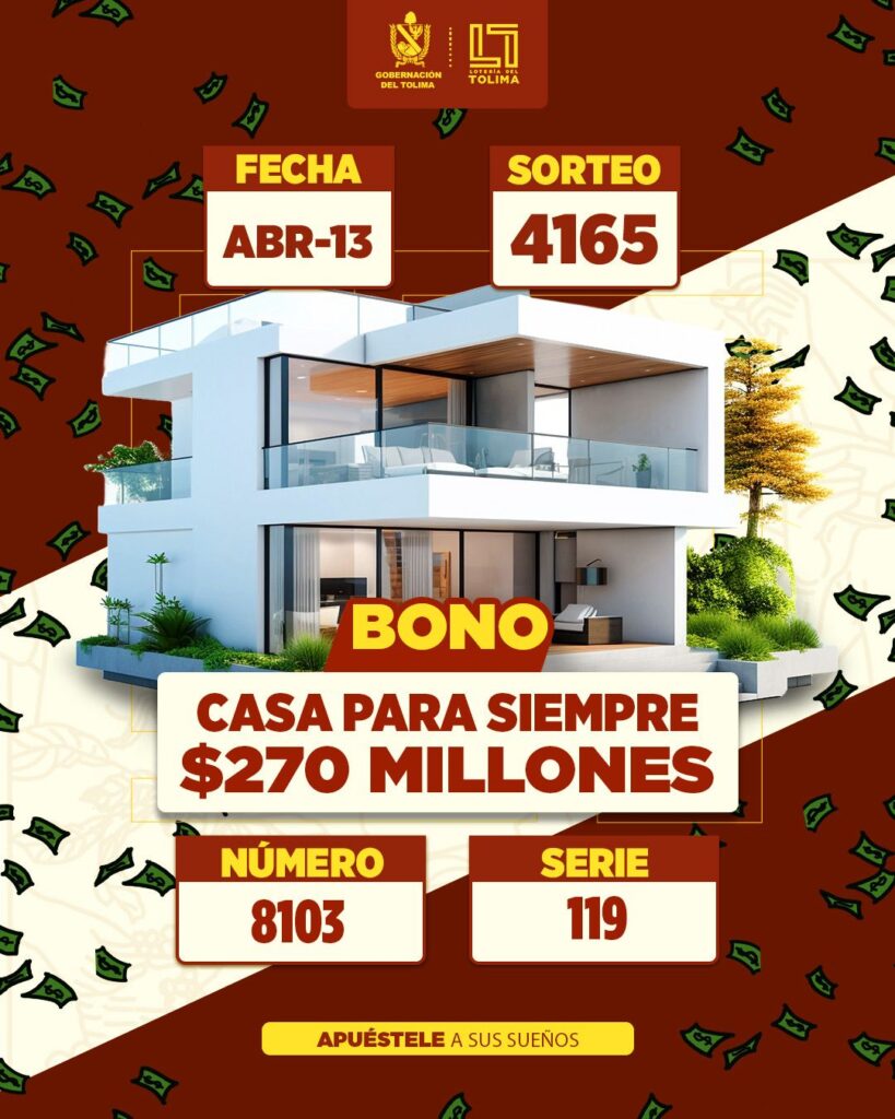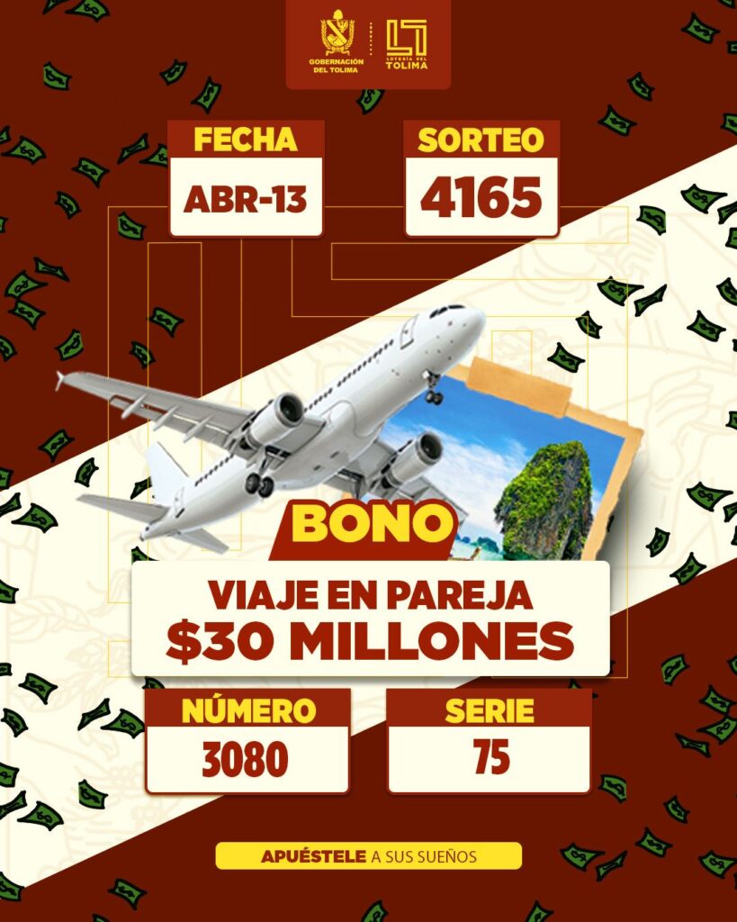 LOTERIA TOLIMA 13 ABRIL 2026 SORTEO 4165