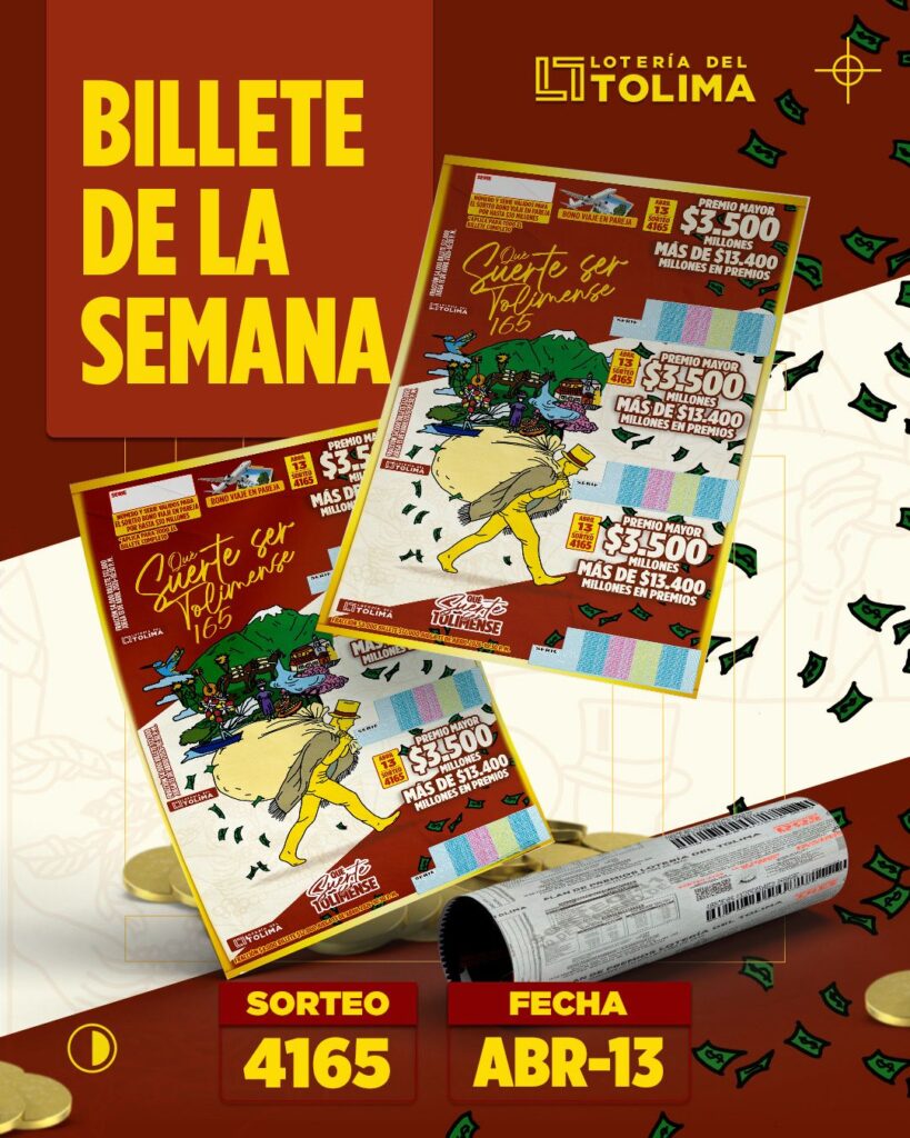 BilleteDeLaSemana #IbaguéCumple #LoteríaDelTolima #QuéSuerteSerTolimense