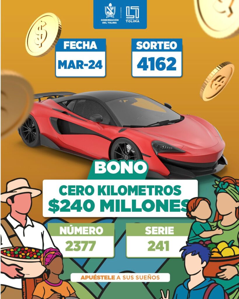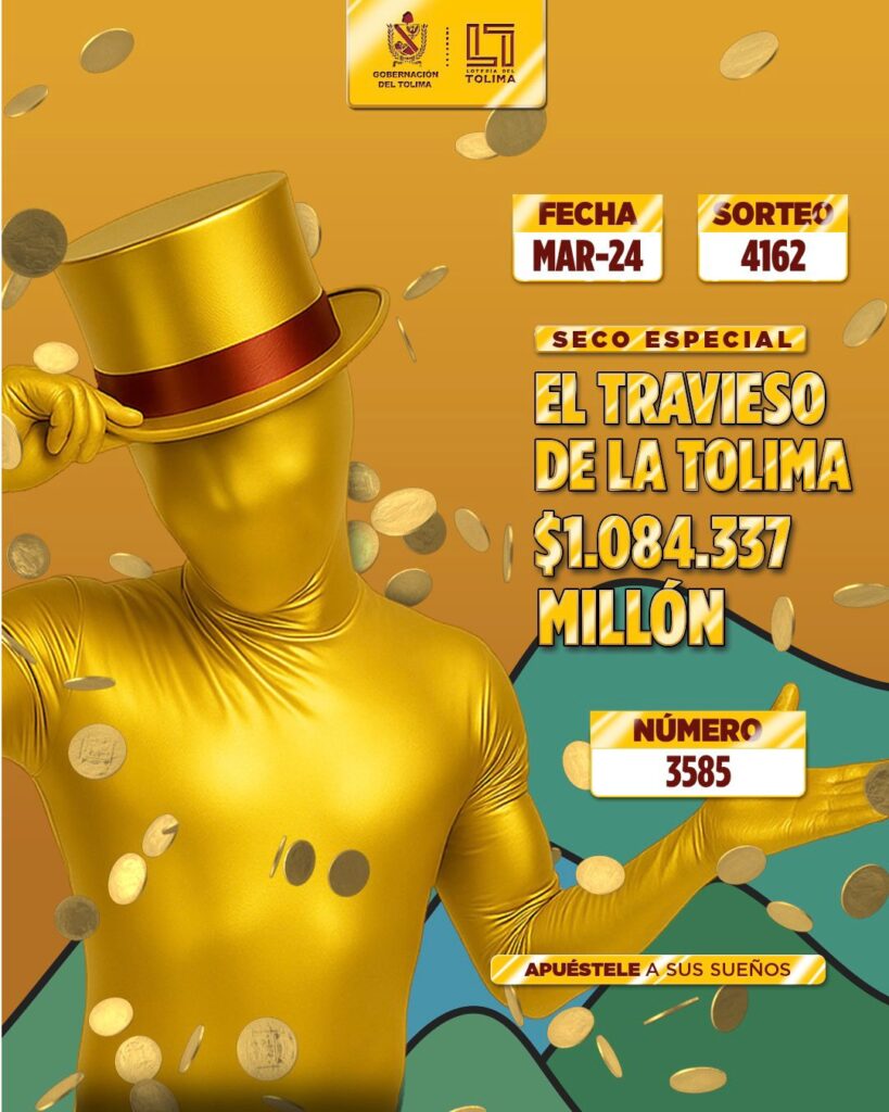 Lotería Tolima Resultados del sorteo 4162 – 24 de marzo: