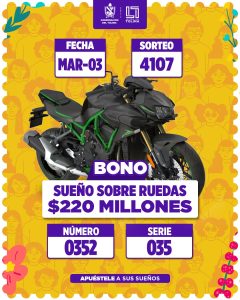 Bono sueño sobre ruedas por $220 millones de pesos con el número 0352 serie 035