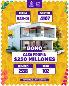 Bono la casa propia por $250 millones de pesos , número 2538 serie 102
