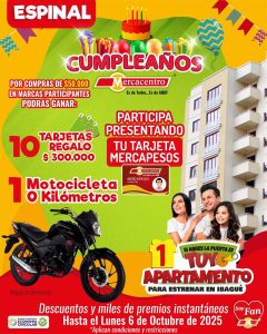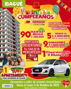 A todas las familias de Ibagué, a los hogares que día a día construyen amor y esperanza, ¡ha llegado el momento de celebrar juntos los cumpleaños de Mercacentro! Esta fecha especial está llena de sorpresas pensadas para papitos, mamitas y todos los integrantes de la familia.
