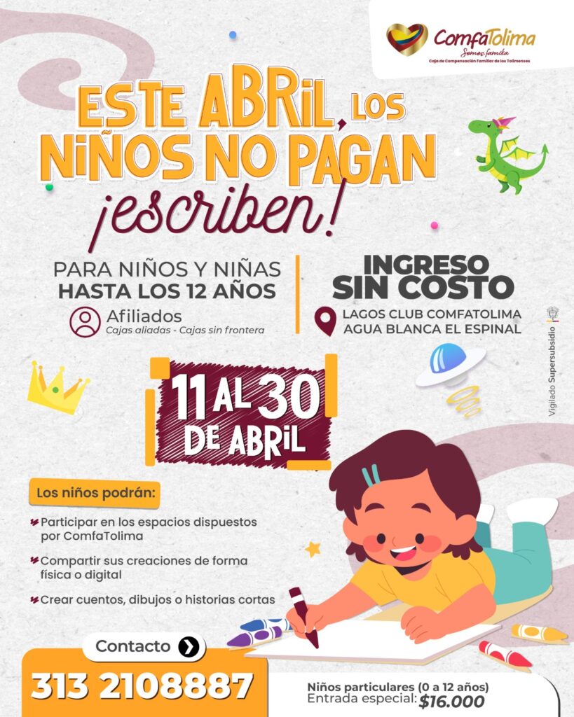 • 12:15 m. a 1:00 p. m. Grupo 4: Novatos, principiantes y expertos, edades de 5 a 10 años.