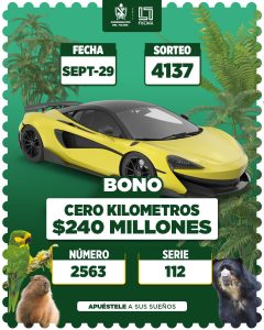 Bono seco cero kilómetros $240 millones de pesos con el número 2563 serie 112