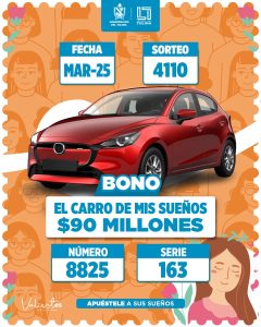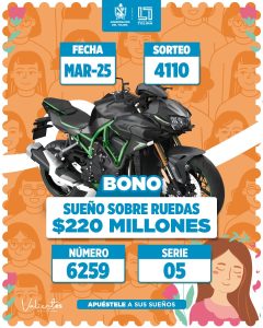 Bono sueño sobre ruedas por $220 millones de pesos con el número 6259 serie 005