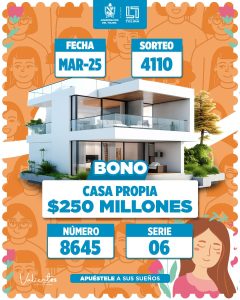 Bono la casa propia por $250 millones de pesos , número 8645 serie 006