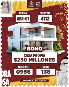 Bono la casa propia por $250 millones de pesos , número 0956 serie 138