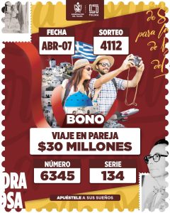 Promocional Viaje en pareja hasta por $30 millones con el número 6345 serie 134
