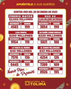 Premio mayor de $3.000 millones de pesos con el número 4583 serie 199 despachado a Ibagué
