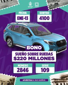 Bono sueño sobre ruedas por $220 millones de pesos con el número 2846 serie 109
