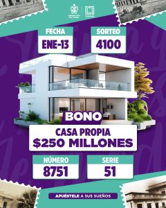 Bono la casa propia por $250 millones de pesos , número 875 serie 051