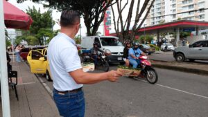 Durante la campaña, equipos de trabajo de la Gobernación han visitado diferentes sectores, como el Centro Comercial Aqua Power Center, donde realizan pedagogía persona a persona y vehículo a vehículo, entregan volantes e informan sobre los beneficios tributarios.